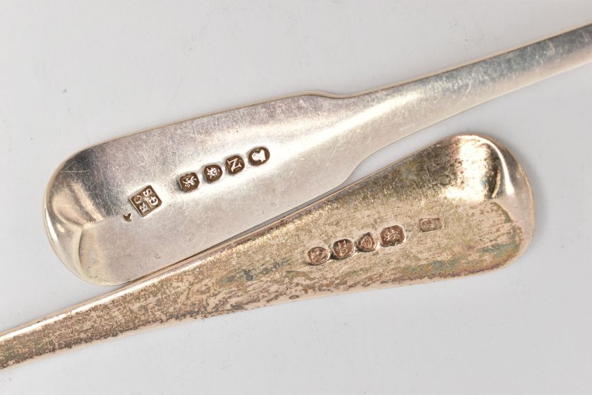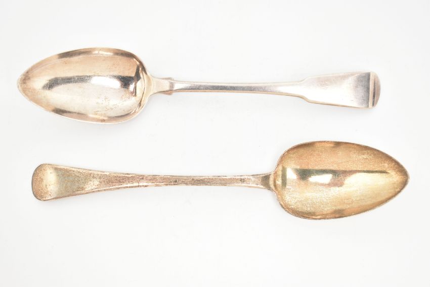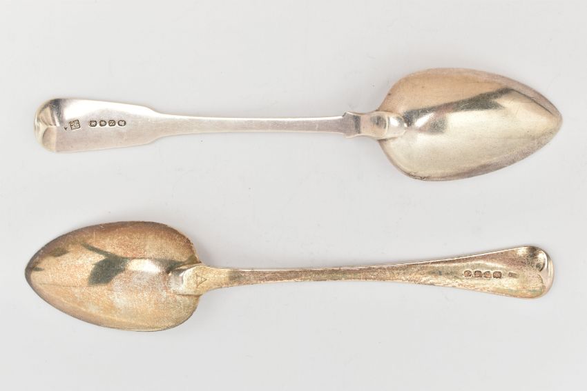 TWO SILVER TABLE SPOONS, the first a fiddle pattern spoon, hallmarked 'Richard Crossley & George Smith IV' London 1808, together with an old English spoon, hallmarked 'Charles Boyton' London 1827, approximate gross weight 134 grams, 4.31 ozt, (condition report: general moderate wear, overall condition good)