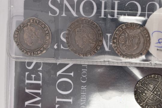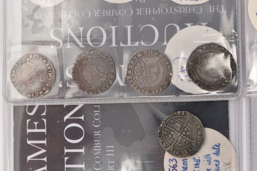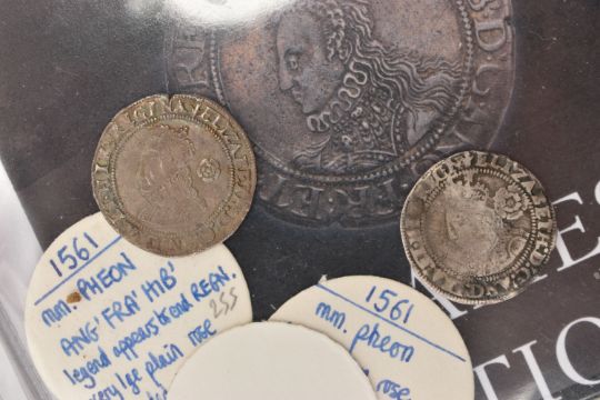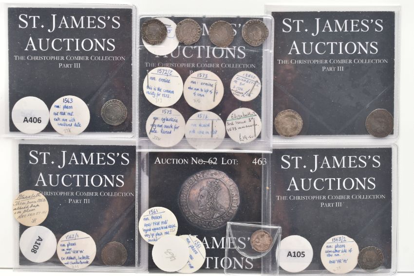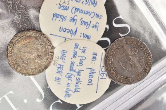 A PARCEL OF 11 ELIZABETH I THREEPENCE COINS, all purchased from St James Auctions around 10 years ago, there are 6x packs with differing amounts of 3d coins inside the packs from 1561, 62, 63, 72, 73, all include the relevant notes on the coins (6 packs total 11 coins)