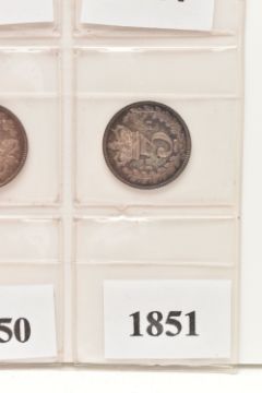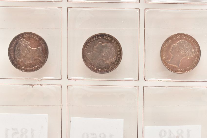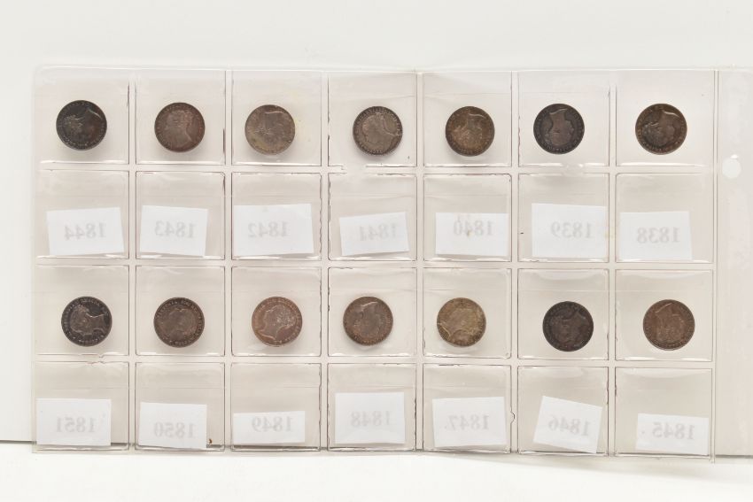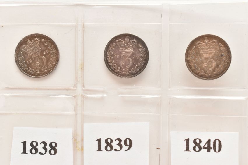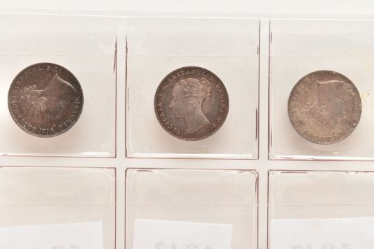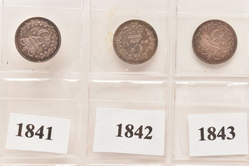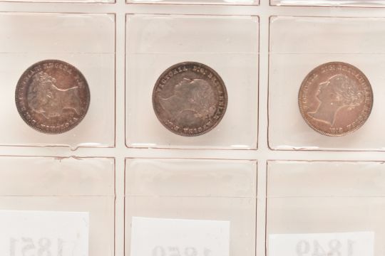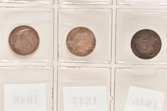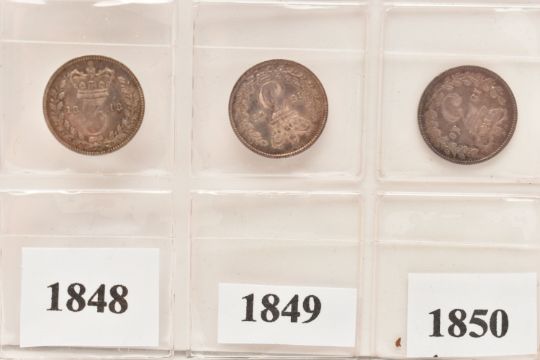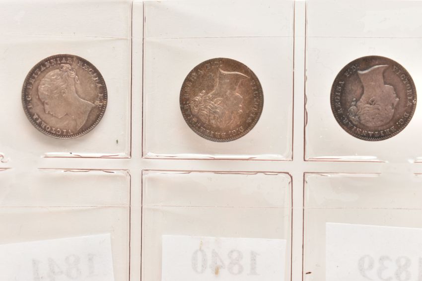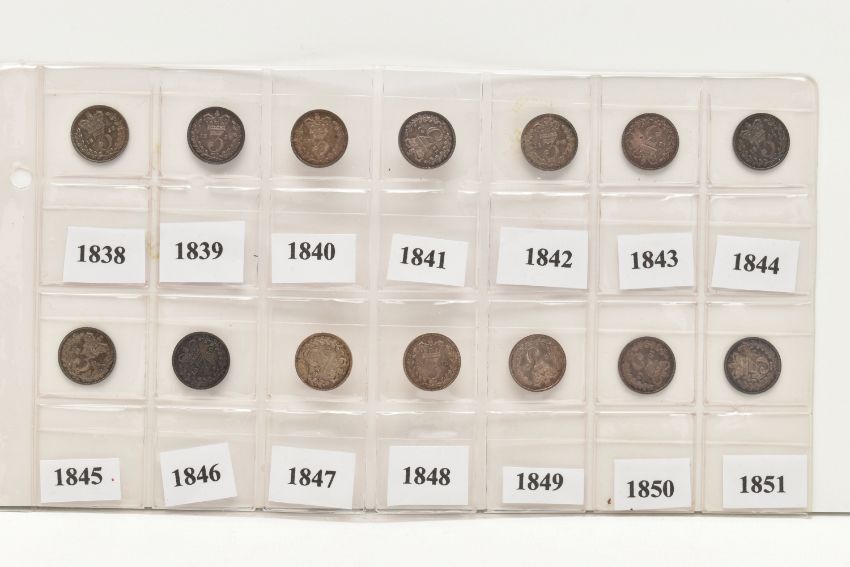 A GROUP OF THREE PENCE 3d COINS VICTORIA 1838 (full ear) through to 1851, all Fourteen coins in VF or better condition 1843 has a broken O in Victoria, 1844 has a large O in Victoria (14)