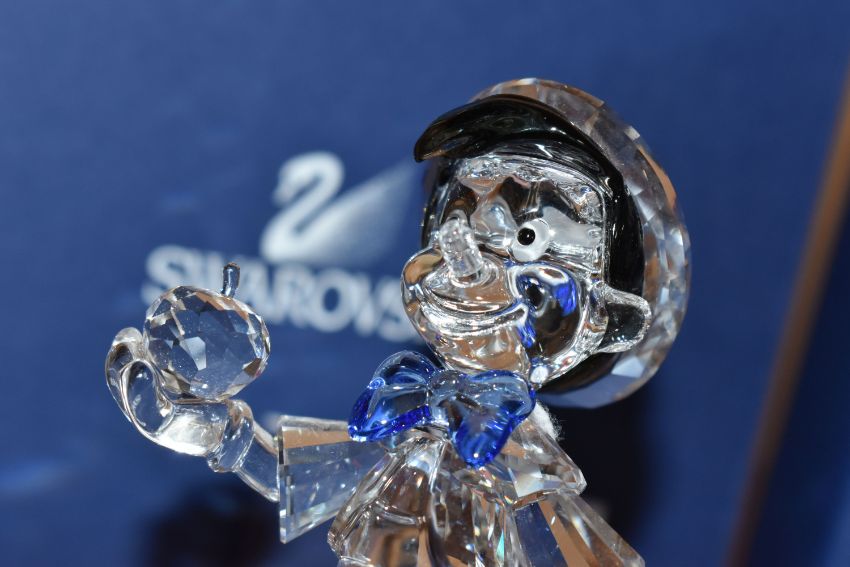 A BOXED SWAROVSKI CRYSTAL'PINOCCHIO' FIGURE, Walt Disney's 'Pinocchio' produced 2010, model no. 1016766, with certificate (1 + box) (Condition Report: figure appears in good condition, box has a few light scratches and scuffs)