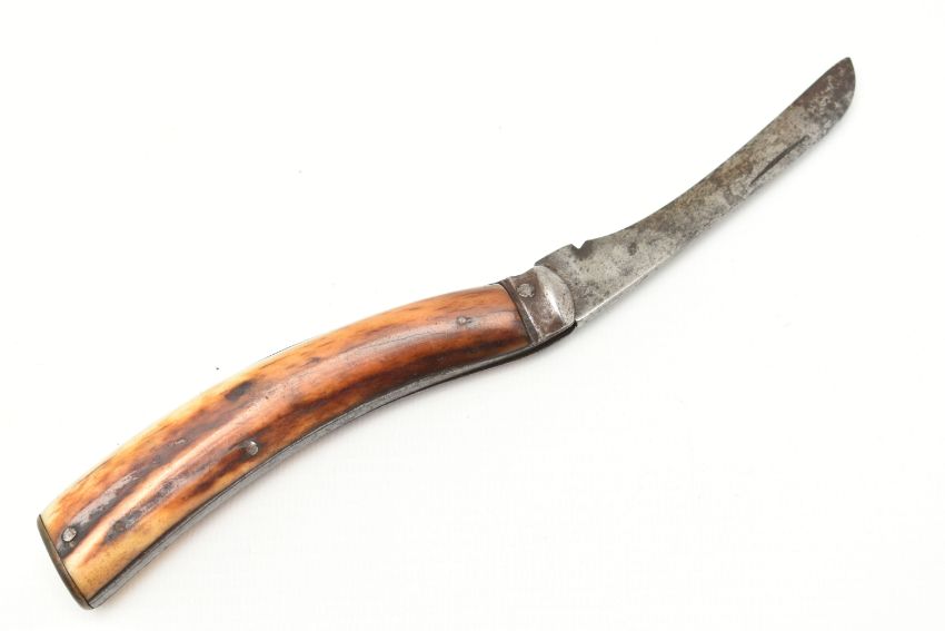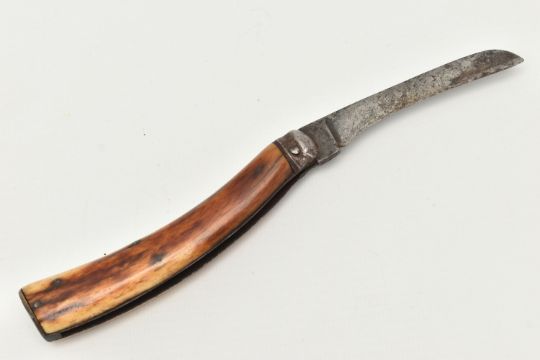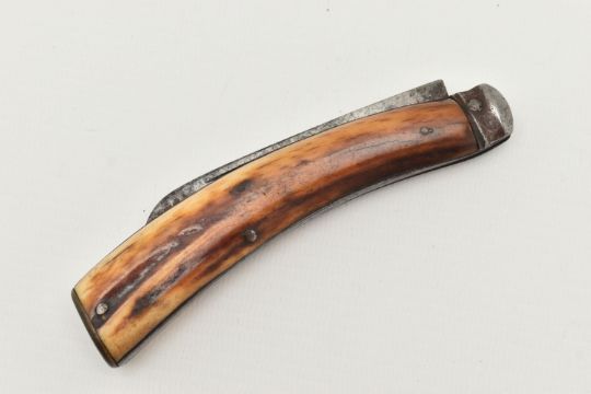 A NEVA FLAT CAP PRUNNING KNIFE, fitted with an antler handle, blade signed 'Neva Sheffield', approximate open length 20cm, blade length 8.5cm (condition report: general wear from use)