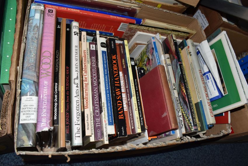 SIX BOXES OF BOOKS, over one hundred books, subjects include gardening, wood turning, woodwork, dress making, cross stitch, cooking, recipes, etc. (s.d/a.f) (6 boxes)