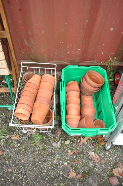 THREE TRAYS CONTAINING VINTAGE AND MODERN TERRACOTTA PLANT POTS of various sizes (50+)