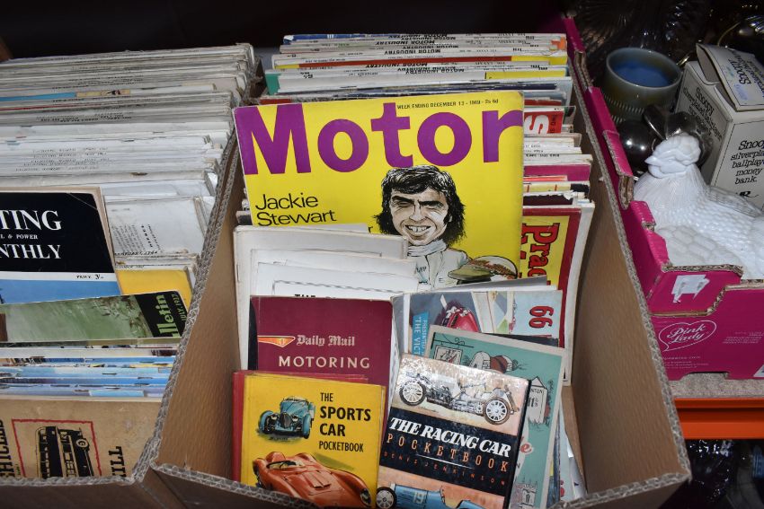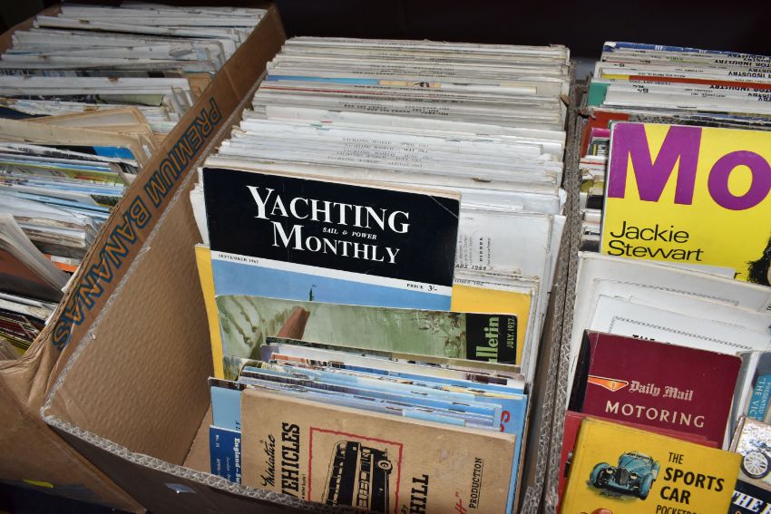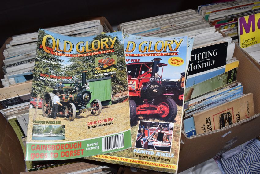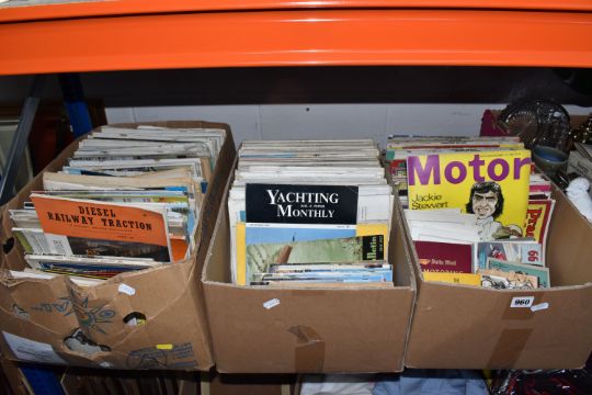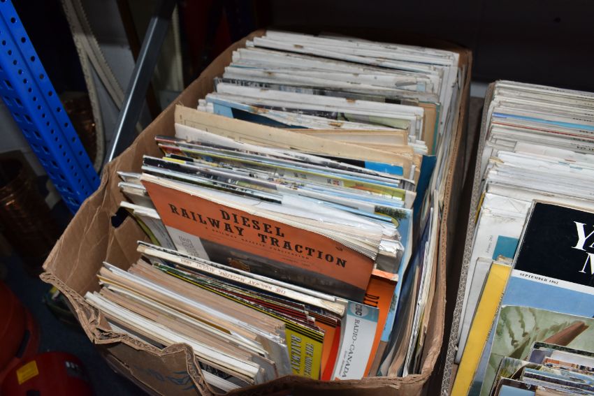 THREE BOXES OF MAGAZINES, subjects include Steam Railway, Diesel railway traction, aircrafts, boats, buses and coaches, motor industry, all magazine are approximately late 1950s onwards, over one hundred magazines (3 boxes), (sd/af)