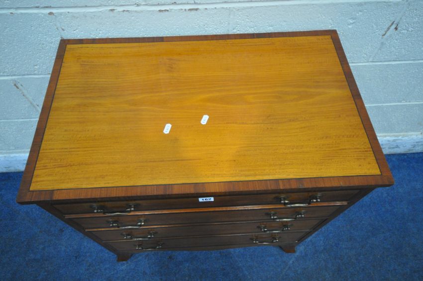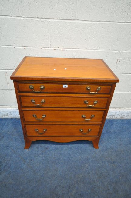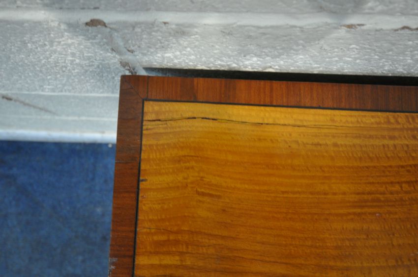 AN EARLY 20TH CENTURY SATINWOOD CHEST OF FOUR GRADUATED DRAWERS, raised on bracket feet, width 174cm x depth 44cm x height 77cm, condition report: tiny pieces of veneer loss, some splits, other signs of usage