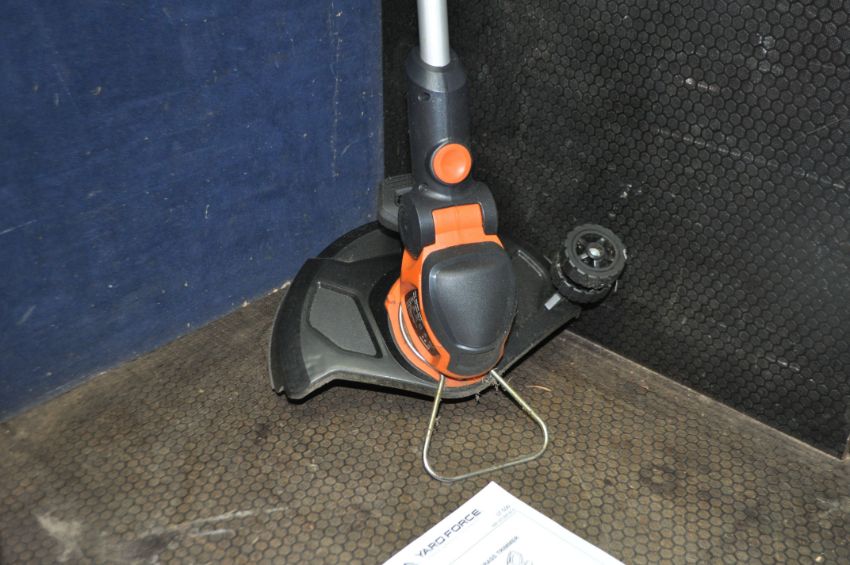 A YARDFORCE LM-G32 CORDLESS LAWN MOWER with grassbox and a Yardforce LT-G30 cordless strimmer, one 40v battery, charger and manuals (PAT pass and working) (2)