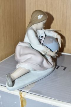 A BOXED LLADRO 'WORLD OF FANTASY' FIGURE No. 5943, depicting a reclining girl holding a globe, designed by Antonio Ramos, issued between 1993 and 1995, height 13cm x width 20cm ( 1 + box) (Condition report: appears in good condition with some knocks to packaging)