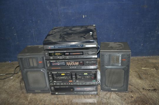 A TECHNICS X33 MINI COMPONENT HI FI comprising of a SL-JS16R turntable, a tuner, tape, amp, a SL-PJ20 CD player, remote, manuals and a pair of SB-F333 speakers (all PAT pass and working)
