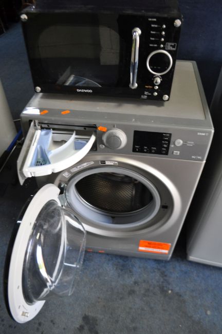 A HOTPOINT RDGR9662GK WASHING MACHINE width 60cm, depth 55cm, height 85cm (PAT pass spin cycle run but not tested any further) and a Daewoo microwave (PAT pass and working) (2)