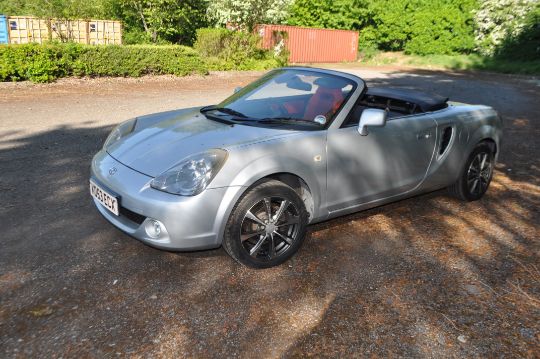 A 2003 TOYOTA MR2 VVTI ROADSTER SPORTS UNFINISHED PROJECT CAR in silver with 1794cc fuel injected petrol engine, six speed manual gearbox, V5C present, four former keepers, first registered 16/10/2003 with plate KO53 ECX, early service history (stops in 2014), two keys fobs with separate alarm fobs, Odometer reads 90872 miles (unwarranted), last MOT expired 2016. Condition Report: Starts and drives but power steering very heavy due to leak from fluid reservoir, soft top in good order, retracts and returns freely, Coupe top present with spares, engine covers (top and bottom) removed but present, arch liners removed but appear present, passenger seat and most interior trim removed but appear present, various other spares (old and new) are in this lot, aftermarket alloy wheels are scuffed but tyres look in good order, PLEASE NOTE: BUYERS PREMIUM IS CHARGED AT 10% + VAT ON THIS LOT PLUS ANY ONLINE PLATFORM CHARGES
