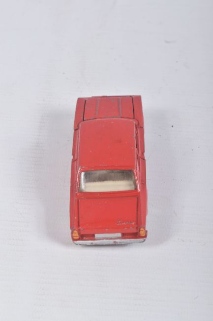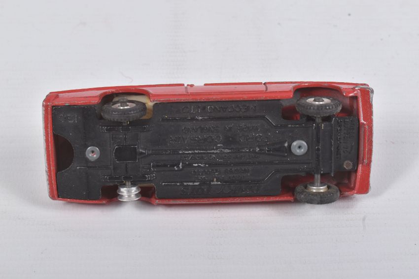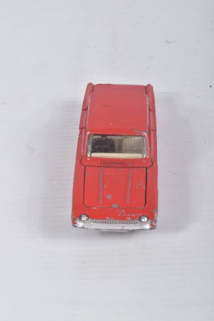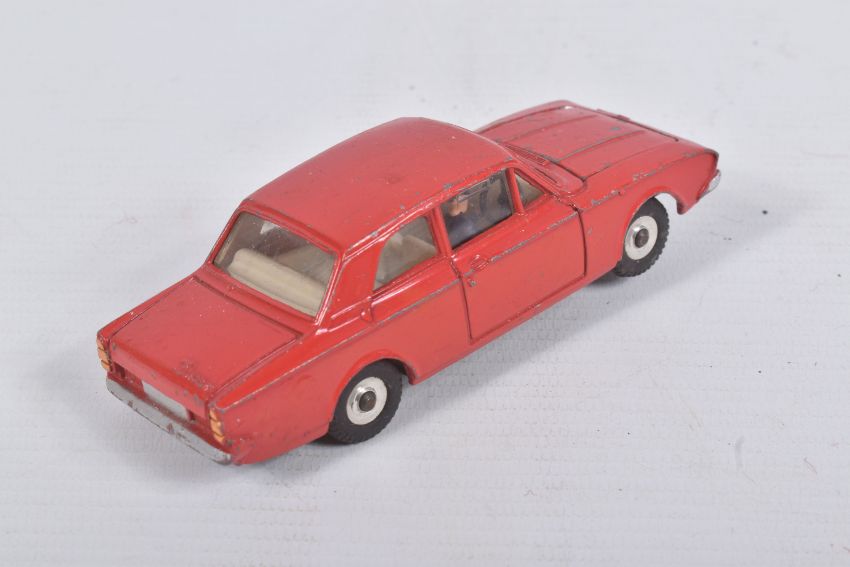AN UNBOXED DINKY TOYS FORD CONSUL CORSAIR, No.130, rarer version with Chauffer figure, red body, off white interior, matt black base, playworn condition with some paint loss, marking and wear, missing n/s rear tyre, with both jewelled headlights and suspension works ok