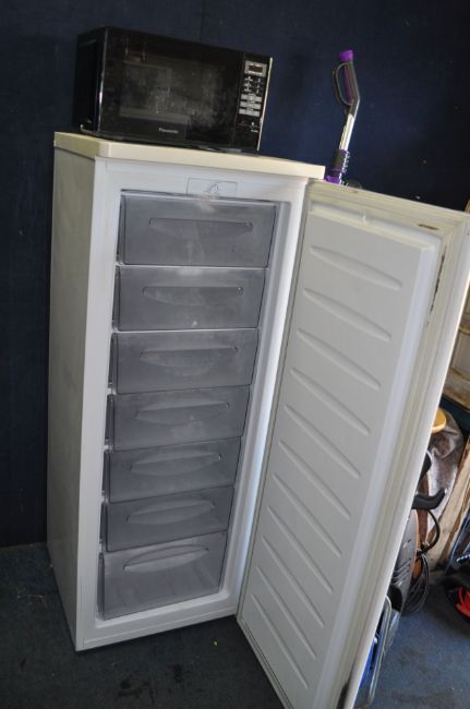A MATSUI LARDER FREEZER, width 55cm, depth 55cm, height 140cm (PAT pass and working at -22 degrees) and a Panasonic microwave (PAT pass and working) (2)