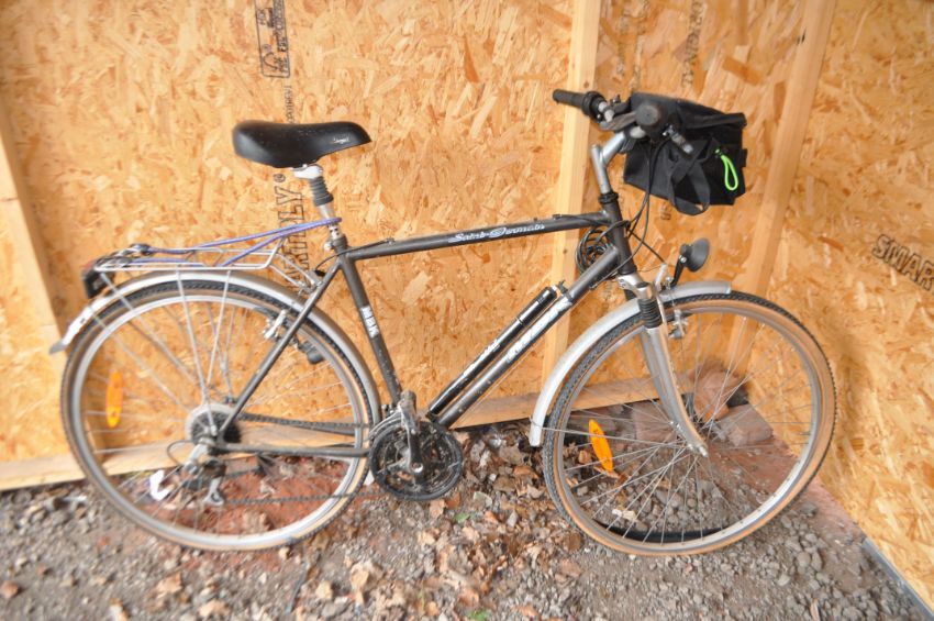 A MBK SAINT GERMAIN GENTS MOUNTAIN BIKE, with 18 speed Shimano twist grip gears, 21 in frame, front and rear dynamo powered lights (UNTESTED), rear rack and front bag