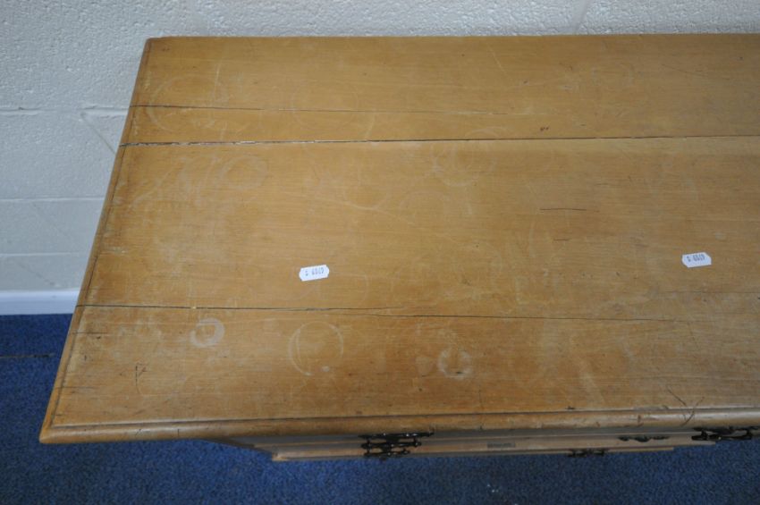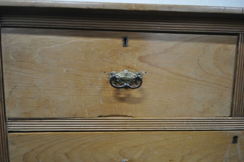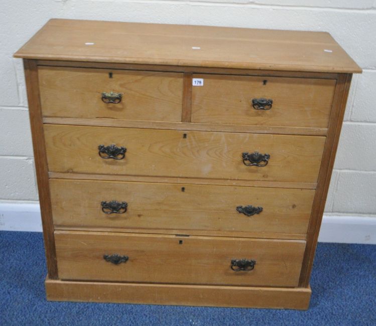 A 19TH CENTURY PINE CHEST OF TWO SHORT OVER THREE LONG DRAWERS, width 103cm x depth 44cm x height 100cm, condition report: historical marks, scuffs, stains, splits, discolouration, other wear and usage