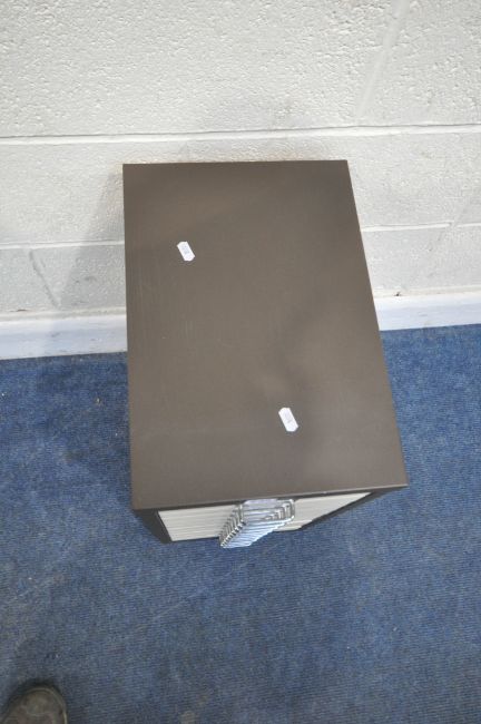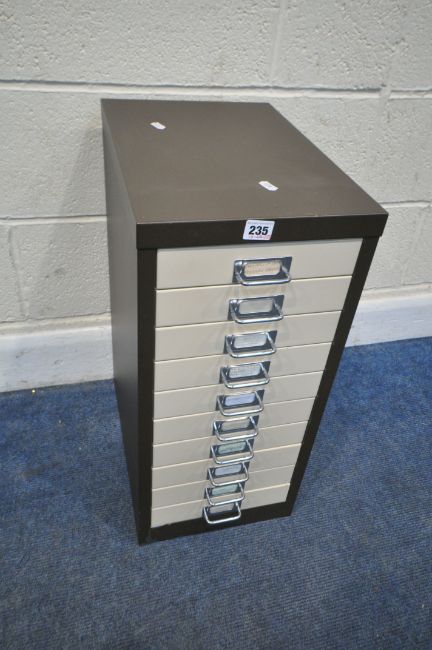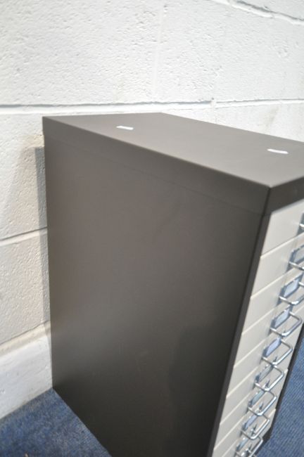 A SMALL METAL FILING CABINET, with ten drawers, width 28cm x depth 43cm x height 61cm, condition report: general signs of usage