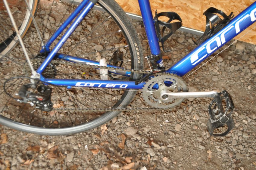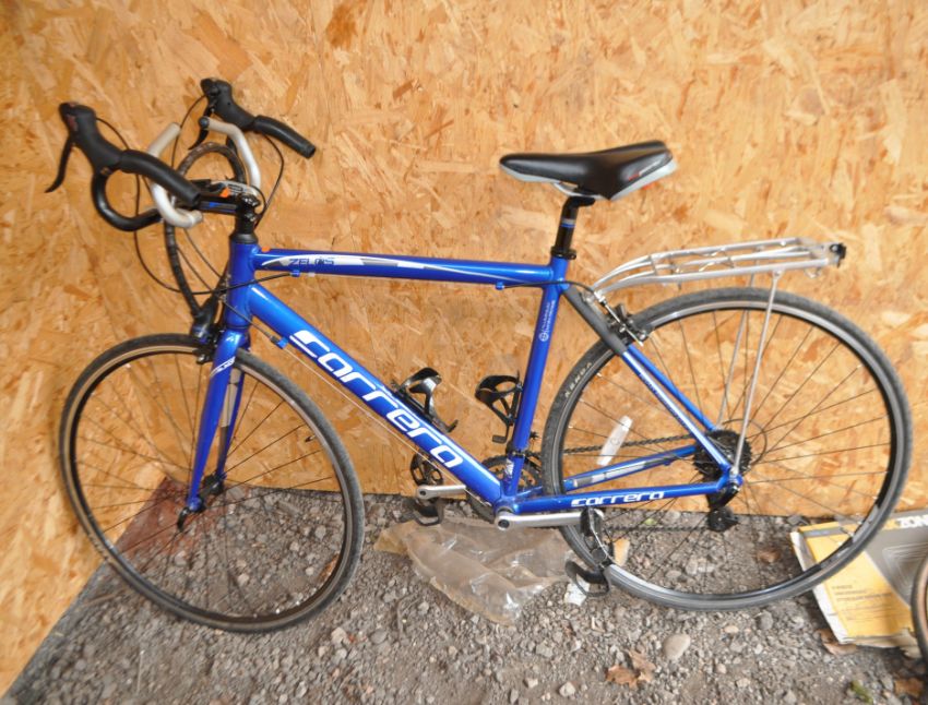 A CARRERA ZELOS ROAD RACING BIKE, with 14 speed Shimano gears, 21in frame, rear rack and Cinelli hand rests to bars
