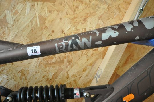 A SARACEN RAW 7005 MOUNTAIN BIKE, with an 18 inch frame, Shimano breaks and gears, condition report: breaks and gears untested, marks, chips, other general signs of wear and usage