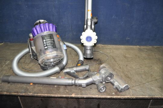 A DYSON DC32 VACUUM CLEANER, and a V6 Flexi cordless vacuum (battery integrity unknown) with power supply (both PAT pass and working) (2)