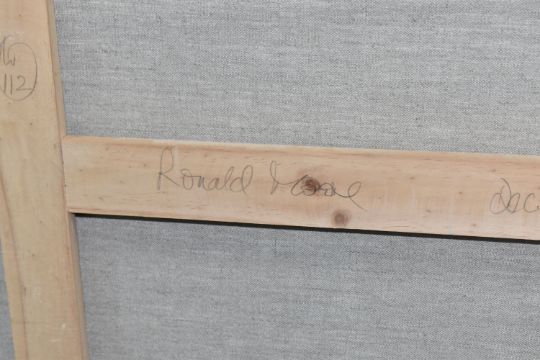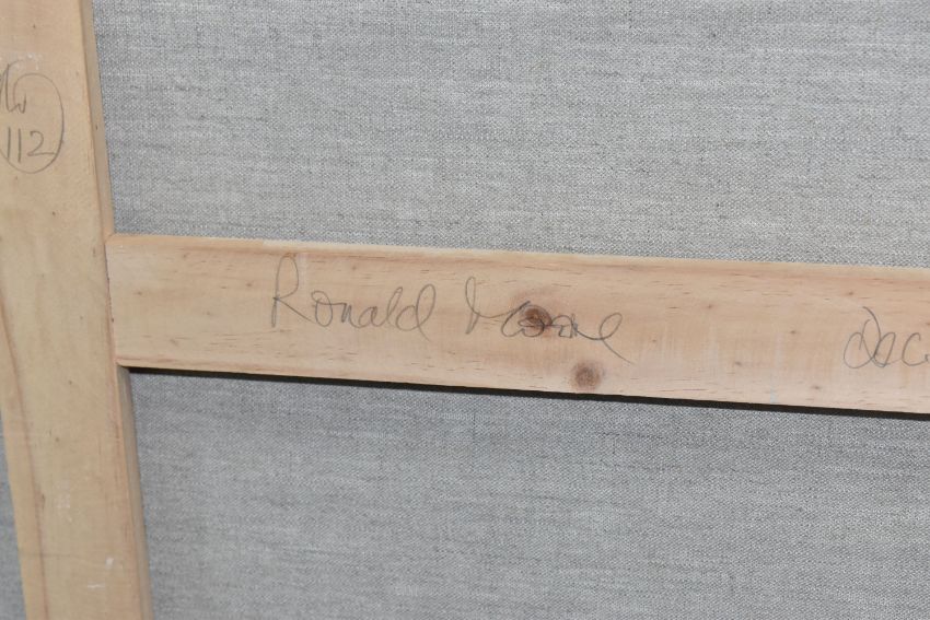RONALD K. MOORE (BRITISH 20TH /21ST CENTURY) 'AUTUMN SUNSET 2' a landscape of trees to the foreground with open countryside beyond, signed and dated 2015 bottom right, titled verso, oil on canvas, approximate size 73cm x 92cm, together with 'Aston and the studio' by the same hand, depicting a cubist view of the artist's studio and the town of Aston beyond, signed and dated 2010 bottom right, titled verso, approximate size 90cm x 70cm, both are unframed