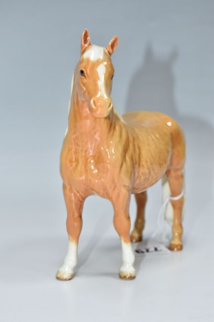 A BESWICK FIGURE PINTO PONY, featuring model no. 1373 a first version in the colour palomino, with a gloss finished, designed by Arthur Gredington, height 16.5cm, 1961-1970, (1), (Condition Report: appears in good overall condition with some light crazing)