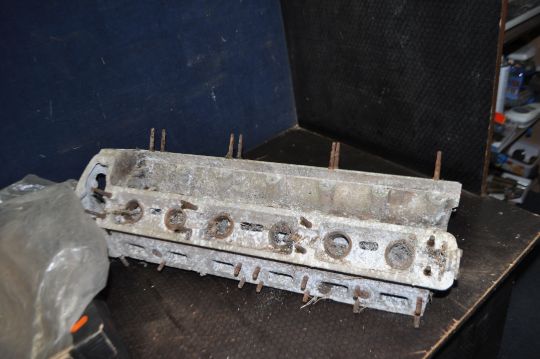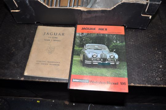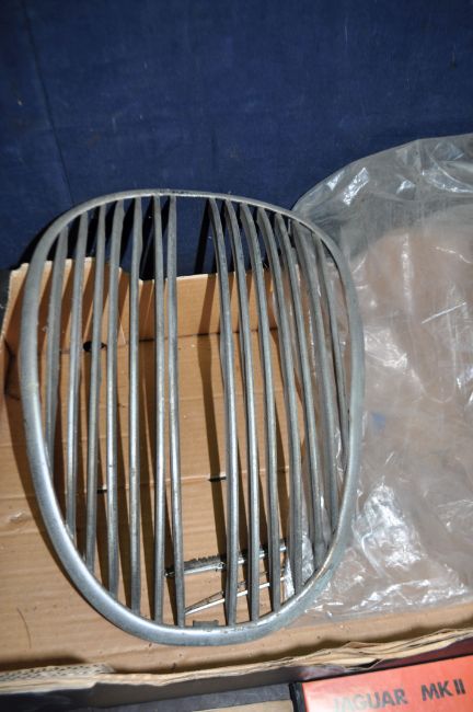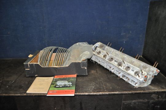 A JAGUAR 3.4 Mk2 RADIATOR GRILLE, cylinder head, Intereuropean workshop manual and a 2.4 Handbook Condition Report: grille needs rechroming, fins distorted, head has oxidisation all over