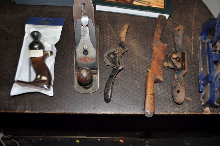 A COLLECTION OF CARPENTRY TOOLS, including a Stanley No 55 curved spokeshave, a new in box Stanley No 803 hand drill, a Record No.778 rebate plane, a Record No. 0151 spokeshave, a Sedgely No.s4 plane, a Crown plane handle pack, etc (stored separately for security)