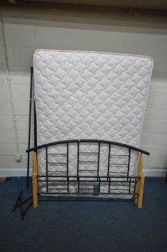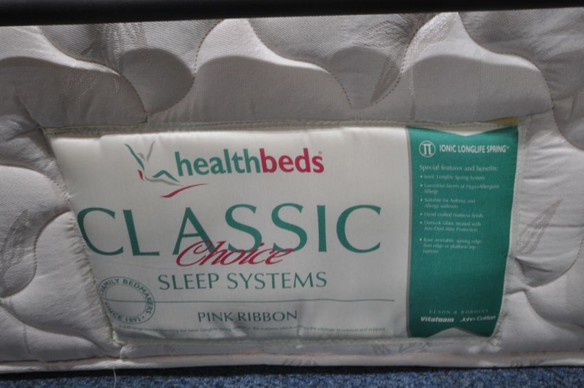 A HEALTHBEDS CLASSIC CHOICE 4FT6 MATTRESS, along with a modern tubular metal bedstead, condition report: general signs of usage