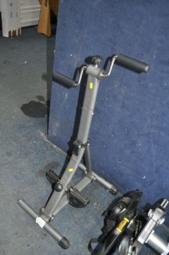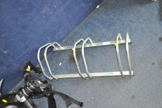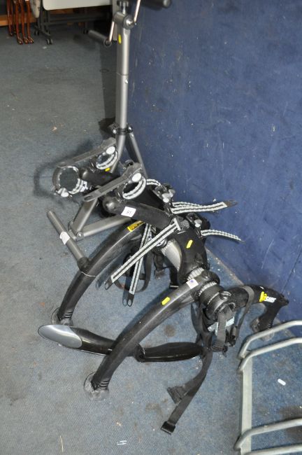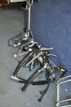 A SARIS CAR BOOT BICYCLE CARRIER, a Mottez three bike rack and an exercise machine (3)