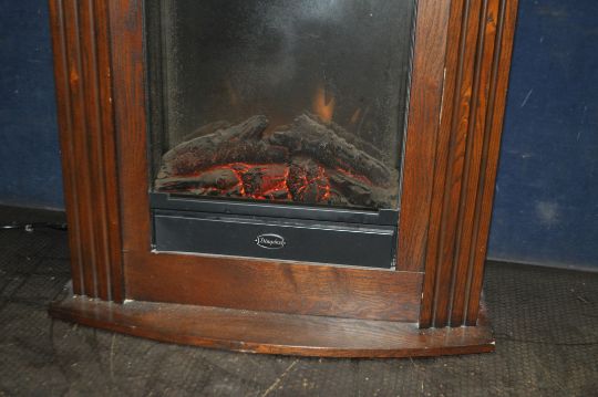 A DIMPLEX MCFP20 LOG BURNER EFFECT ELECTRIC HEATER with remote, width 70cm, depth 29cm, height 76cm (PAT pass and working)