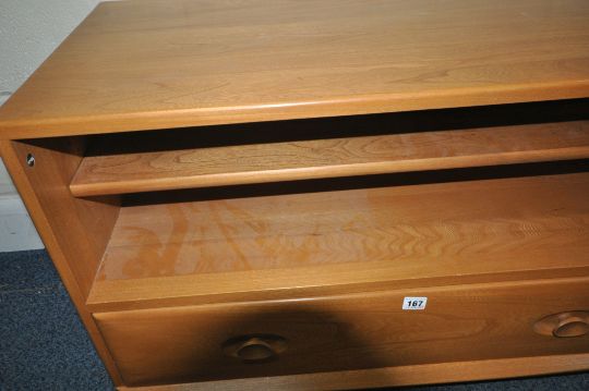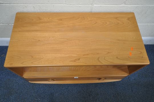 LUCIAN ERCOLANI, AN ERCOL MID-CENTURY ELM TV STAND, with a single shelf and drawer, width 92m x depth 46cm x height 56cm, condition report: general signs of wear and usage