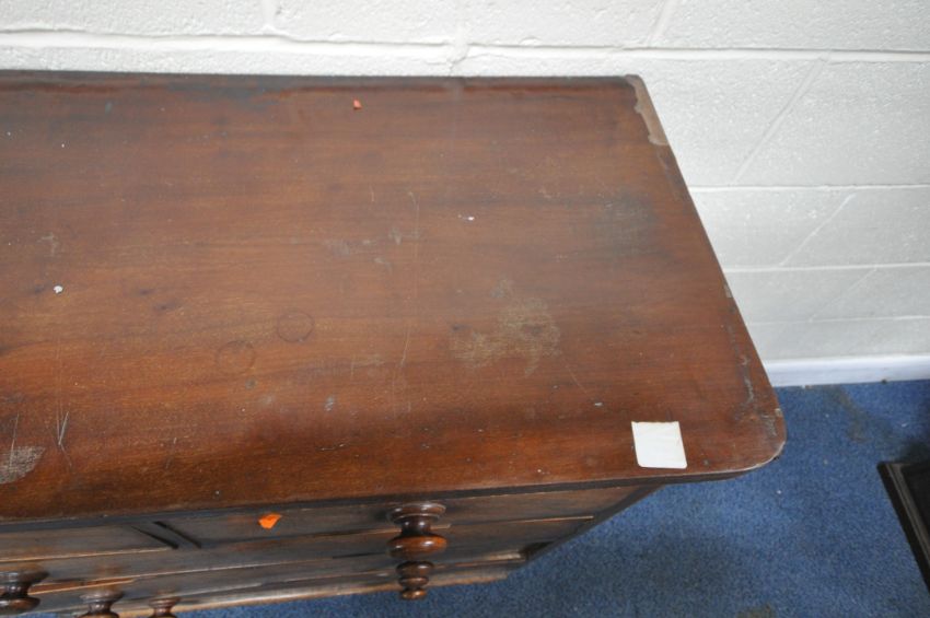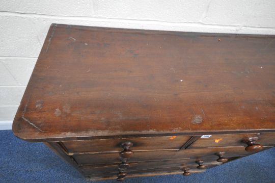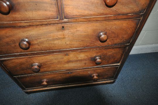 A VICTORIAN MAHOGANY CHEST OF TWO SHORT OVER THREE LONG DRAWERS, width 105cm x depth 49cm x height 104cm, condition report: in need of restoration, due to marks, scuffs, stains, rickety carcass, losses all over, other wear and tear