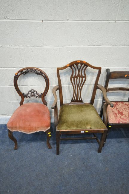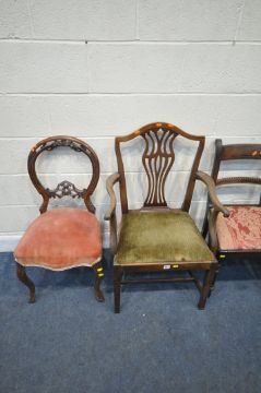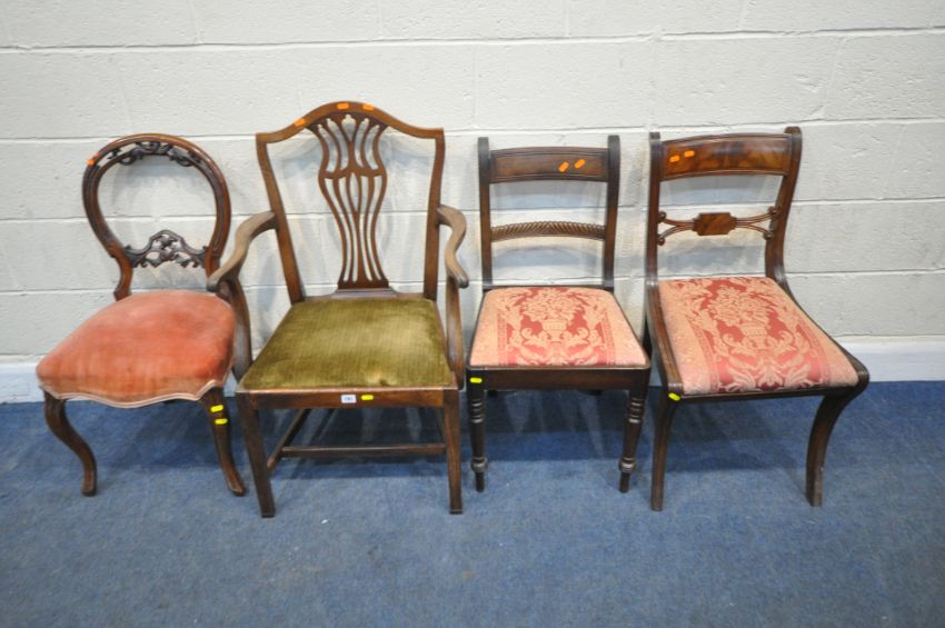 FOUR CHAIRS, varying in shape, size, style, timber, etc, condition report: all with imperfections, such as marks, scuffs, stains, discolouration, other wear and usage (4)