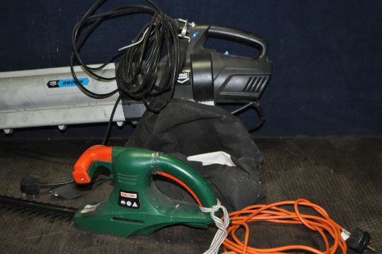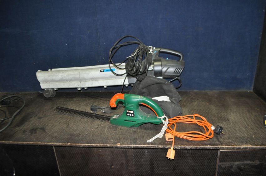 A MacALLISTER GARDEN BLOWER/VAC with collection bag and a Challenge hedge trimmer (both PAT pass and working) (2)