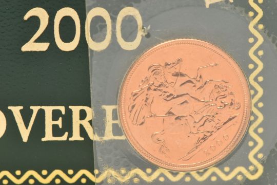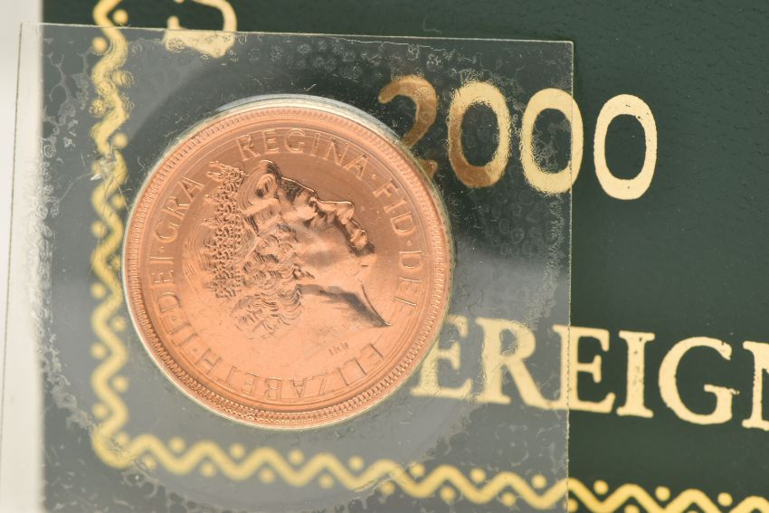 A BOXED UK GOLD BULLION SOVEREIGN 2000 Elizabeth 11 7.98g 22.05mm 22ct Gold