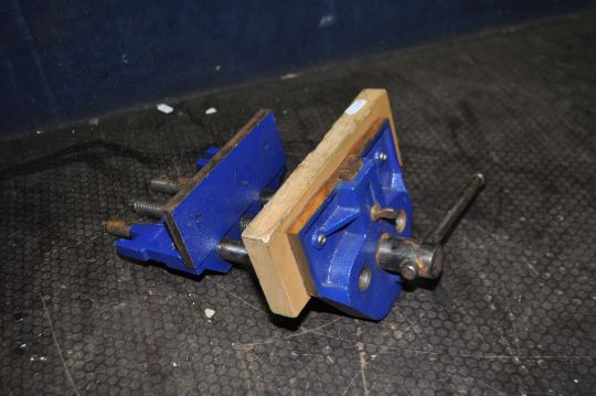 AN IRWIN RECORD CARPENTERS VICE with 7in vice and one wooden jaw protector