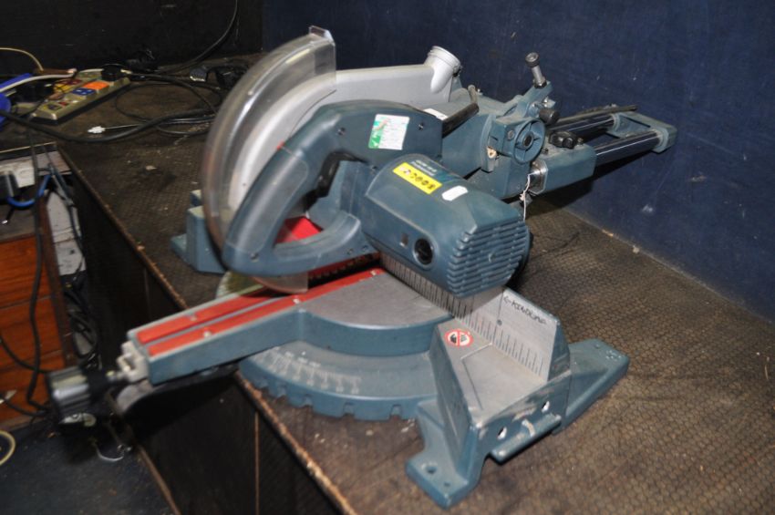 A BOSCH PROFESSIONAL GCM10S SLIDING COMPOUND MITRE SAW with a 254mm blade (PAT pass and working but smells brushy)