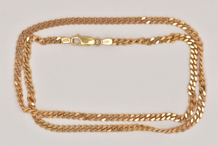 A 9CT GOLD CURB LINK CHAIN, solid links, fitted with a lobster clasp, hallmarked 9ct London import, length 460mm, approximate gross weight 14.4 grams (condition report: general light wear, clasp in working order)