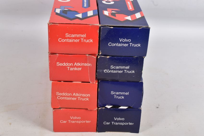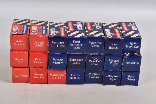 A COLLECTION OF BOXED CORGI DIECAST MODELS, to include three Scammel Trucks, two Seddon Atkinson trucks, three Volvo trucks, car models by Ford, Pontiac, Porsche, Ferrari, Mercedes-Benz, Land Rover, Citroen, Jaguar to name a few, the models appear in good condition, the outer cardboard boxes have wear on corners and edges with some tears on the flaps, contents have not been checked for completeness