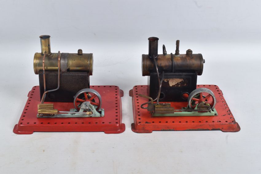 TWO UNBOXED MAMOD LIVE STEAM STATIONARY ENGINES, No.S.E.1. & S.E.2., neither tested, both in playworn condition, with paint loss, marking and wear, both have been fired up and run, both missing burner/burner tray, funnel and driving band
