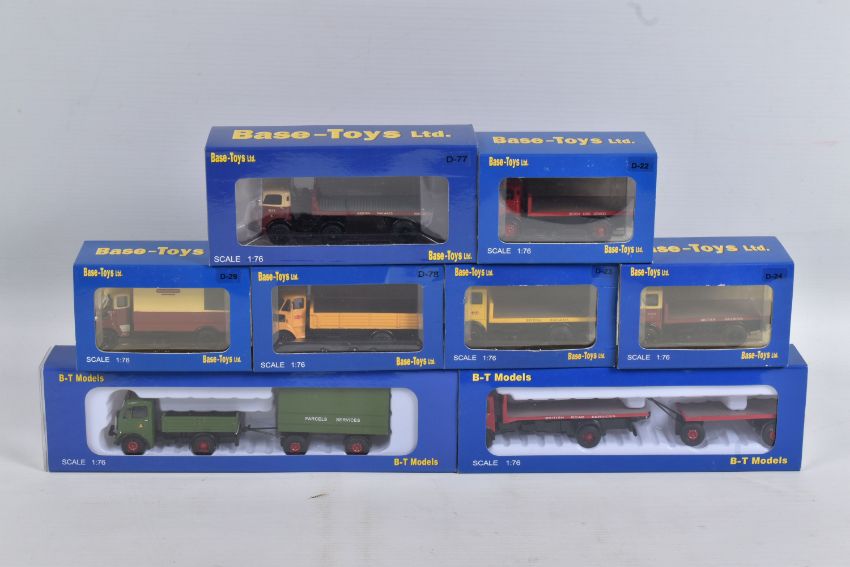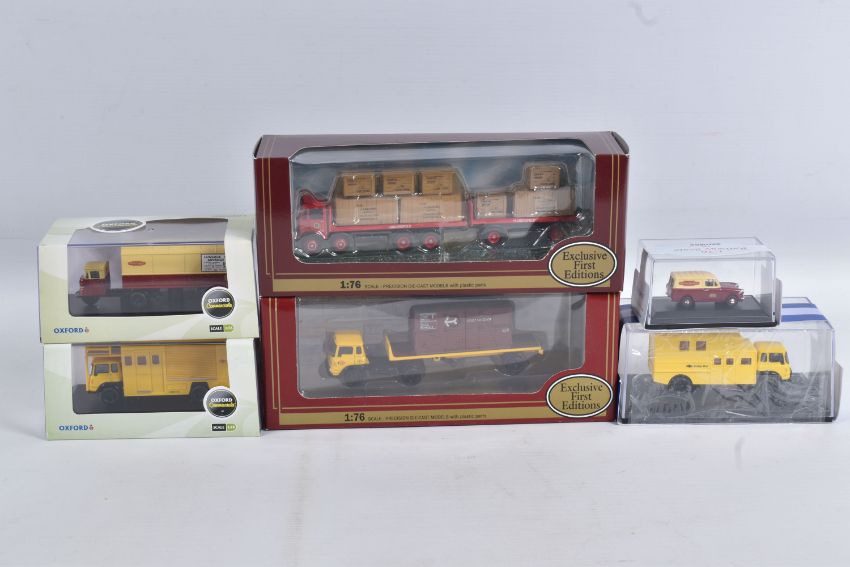 A TRAY CONTAINING A SELECTION OF BOXED DIECAST MODELS, Base-Toys models including 'British Road Services' DA42, D-19, D-13, D-05, D-06, D-12, D-29, D-78, Classix Transport Treasures 1/76 scale '00' gauge models including EM76641, EM76602, EM76617, Oxford Commercials models including British Rail TK emergency Bridging unit 76TK013, British Rail Scammell Mechanical horse van trailer 76MH014, Oxford Roadshow British Rail yellow 2 76TK003, The collectors die cast models exclusive first editions commercials model Mammoth major flatbed and trailers AEC MKIII 30901 and Bedford TK Arctic British Railways 22205, all models appear in good condition however contents has not been checked for their completion, housed inside their plastic and acrylic casings and outer boxes, boxes are in mostly good condition however some have wear to sharp edges and corners and some have sellotape