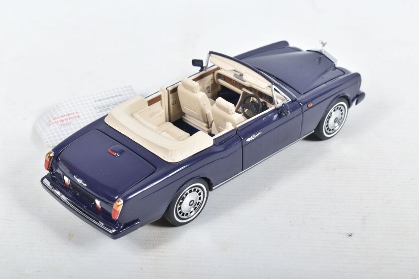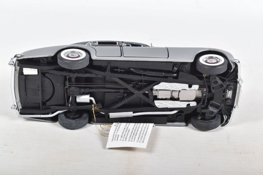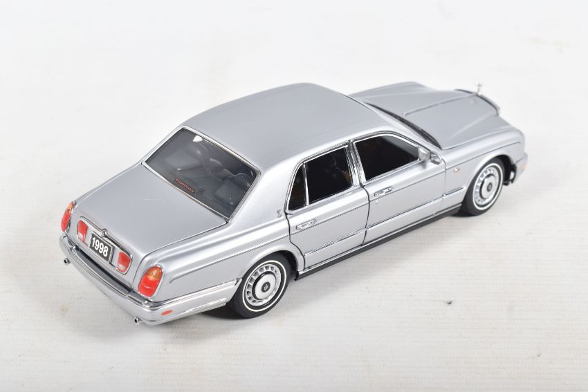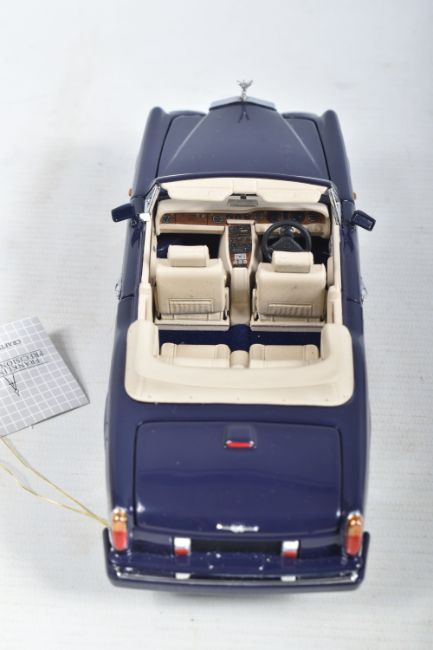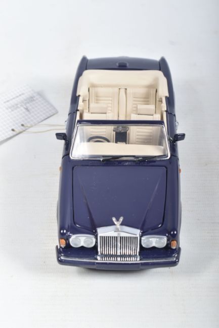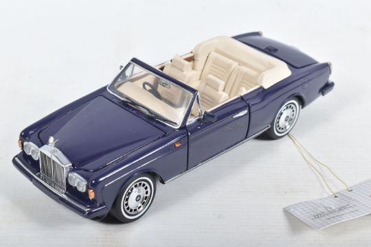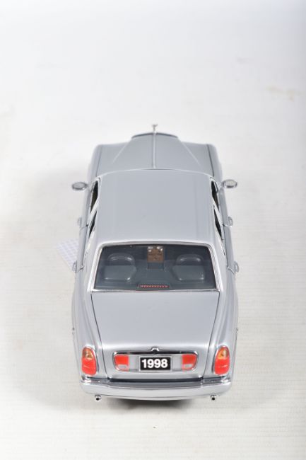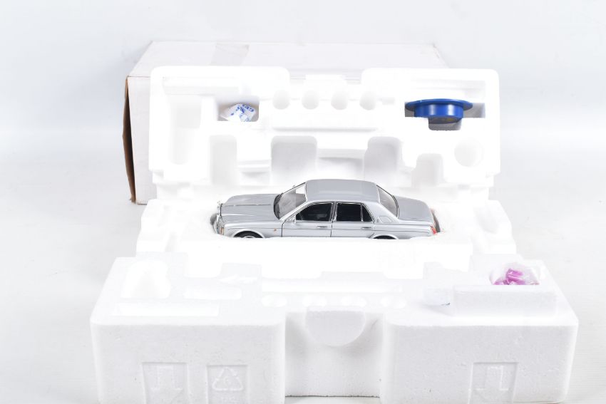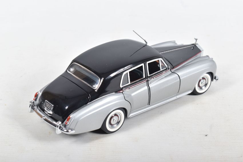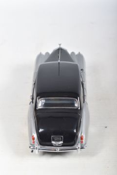 THREE BOXED FRANKLIN MINT 1/24 SCALE ROLLS-ROYCE MOTOR CAR MODELS, 1955 Silver Cloud I (B11UZ91), 1993 Corniche IV Anniversary Limited Edition (B11UD44) and 1998 Silver Seraph (B11XN59), all appear complete and in very good condition, look to have hardly, if ever been removed from boxes, Silver Cloud and Corniche both with Certificates of Authenticity, other paperwork and swing tag, Silver Seraph is missing all paperwork except swing tag, boxes all complete with packing but have some minor damage and wear to outer cardboard boxes