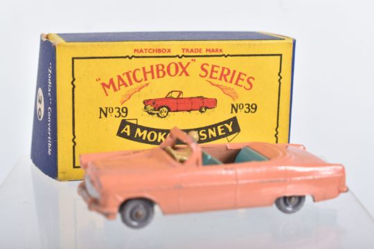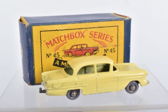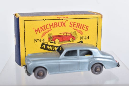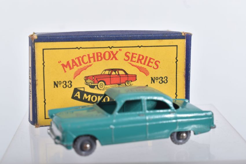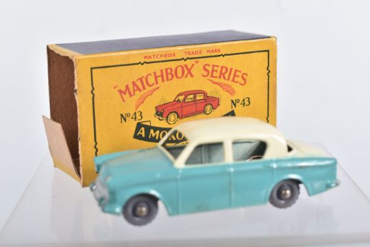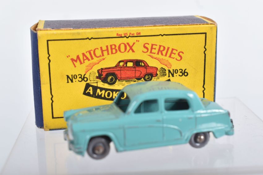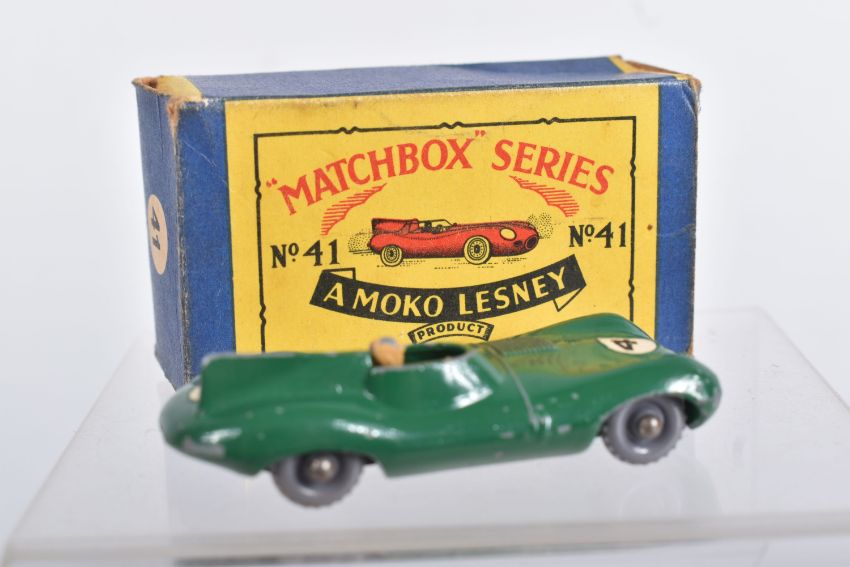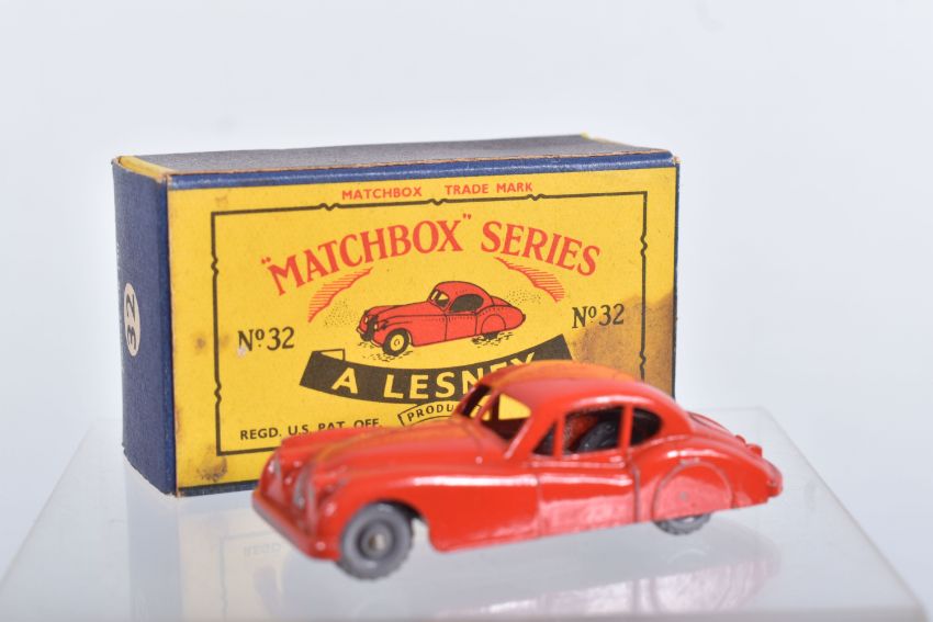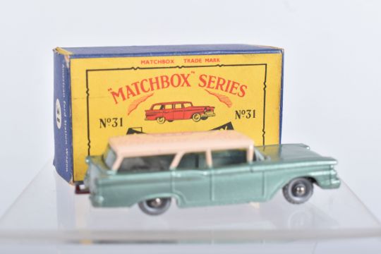 BOXED MATCHBOX 1-75 SERIES MODELS No's 31-45, all appear complete and in good condition with minor paint loss and wear, very minor surface rusting to some axles, to include Jaguar XK-140, No.32, red body, black base, grey plastic wheels, Volkswagen Van, No.34 , grey plastic wheels, Hillman Minx, No.43, turquoise body, cream roof, grey plastic wheels, No's.31, 33-39, 41-45 all contained in Moko Lesney type B boxes, No's. 32, 40 in Lesney type C boxes, all boxes with some damage, marking and wear, some with missing or detached flaps, No.40 marked New Model to end flaps