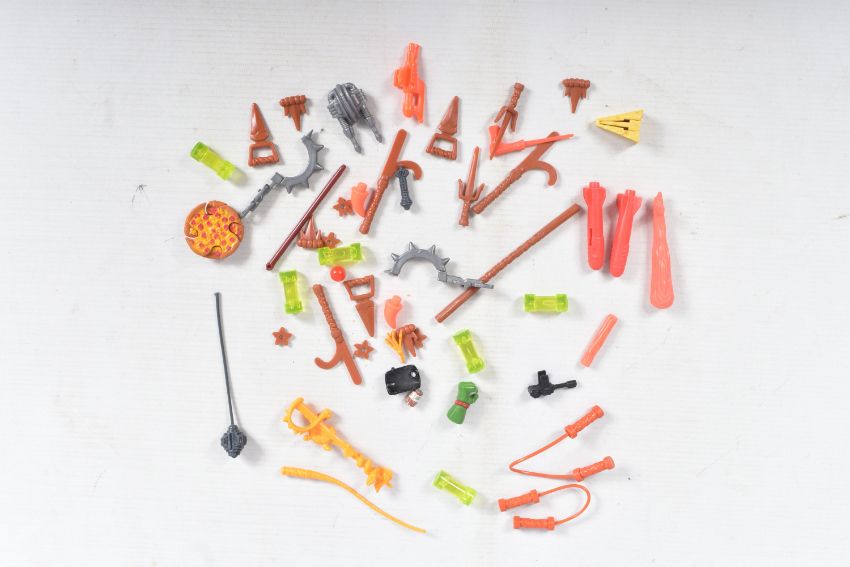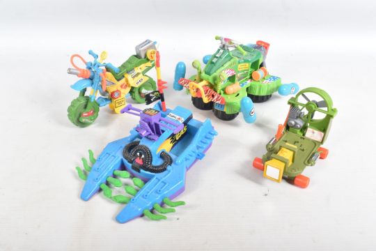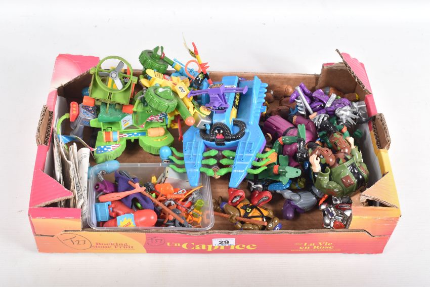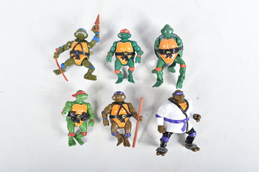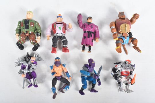 A COLLECTION OF UNBOXED PLAYMATES TEENAGE MUTANT NINJA TURTLE FIGURES AND ACCESSORIES, to include a Robotic Rocksteady Mutations RockSteady, Splinter, Rahzar, Bebop, Hard Head Shredder, Night Ninja Don, Raphael, Michelangelo, Leo, Donatello, Super Shredder, Foot Soldier, vehicles include Foot Ski, Muta Ski, Muta Bike, and Cheapskate, with a quantity of instructions, all unboxed, most include accessories